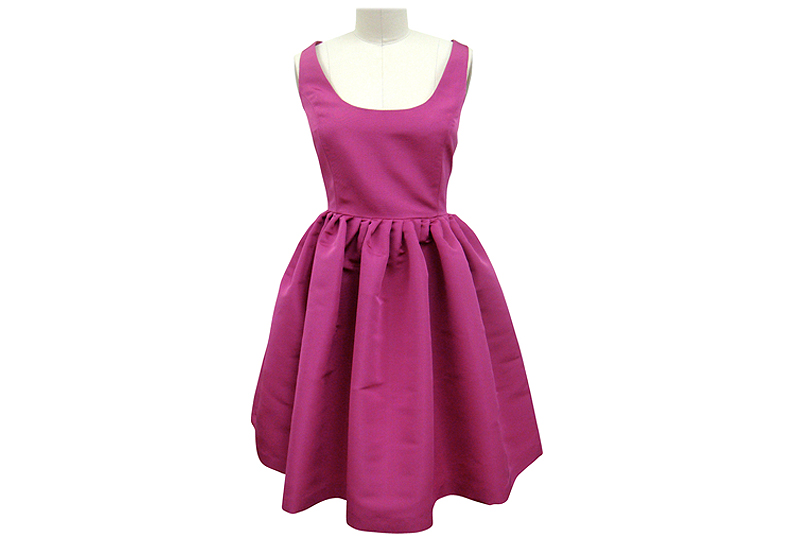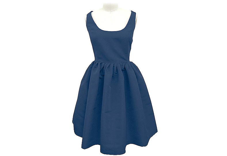 The classic scoop neck dress with thin straps and full flattering skirt. Fully lined and invisible back zipper. Made of silk faille and DRY CLEAN ONLY.